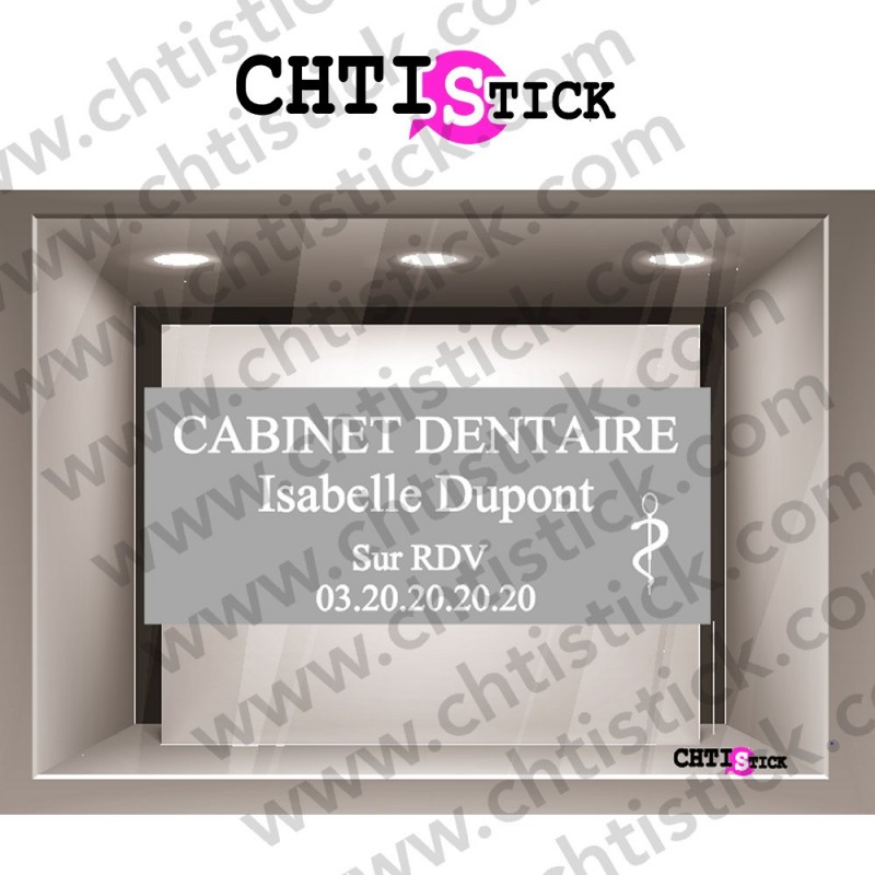 sticker vitrine cabinet dentaire en film aspect dépoli - à personnaliser - modèle 23