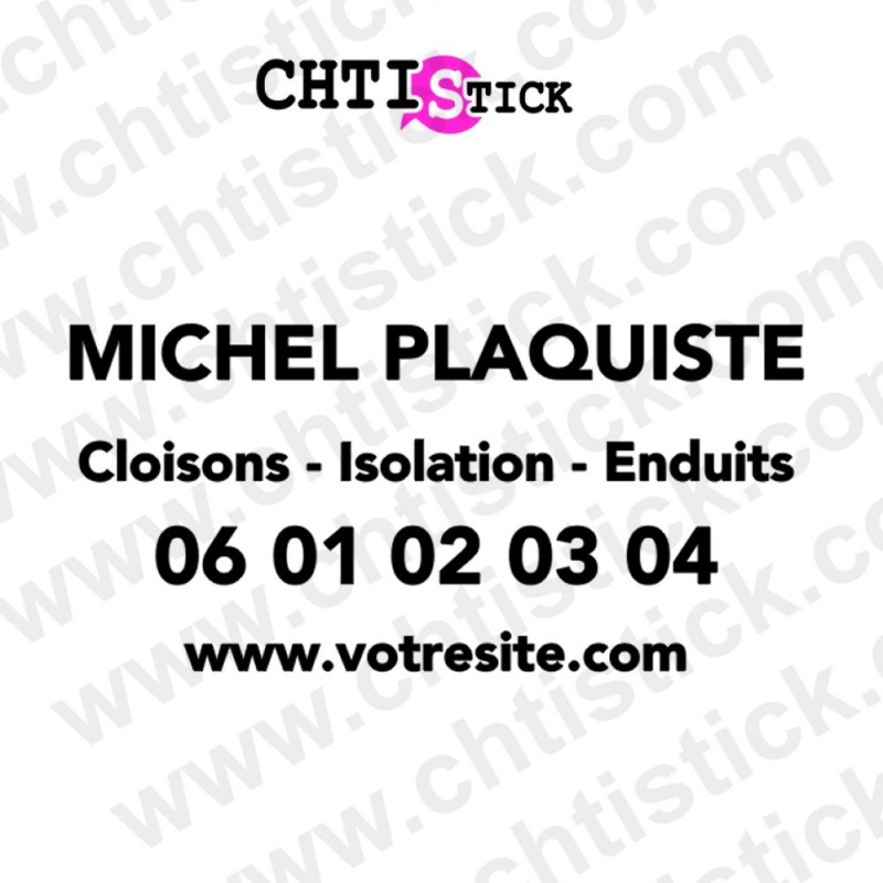 Donnez une visibilité professionnelle à votre activité avec ce marquage véhicule Plaquiste / Plâtrier, conçu pour les artisans et entreprises spécialisées dans la plâtrerie et l’aménagement intérieur. Ce sticker vinyle haute qualité s’adapte aux vitres arrière et latérales ainsi qu’à la carrosserie de votre fourgon, camion ou voiture de service.