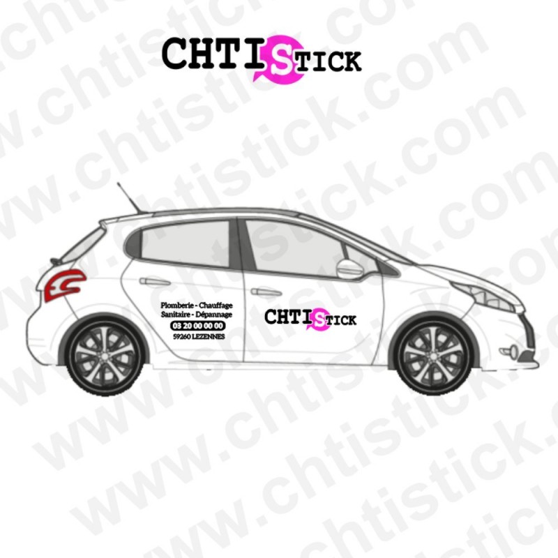 Publicité pour voiture de type léger, flocage véhicule pour modèle taille S adaptable 208, clio, 206, Zoé c3 ...