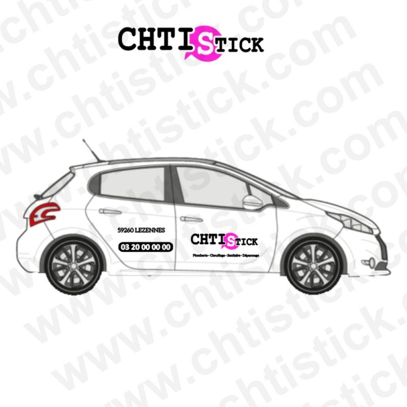 Marquage publicitaire pour véhicule, modèle n° 4 - Marquage véhicule petit gabarit 208, Clio, C3, 206 Zoé, mégane ...