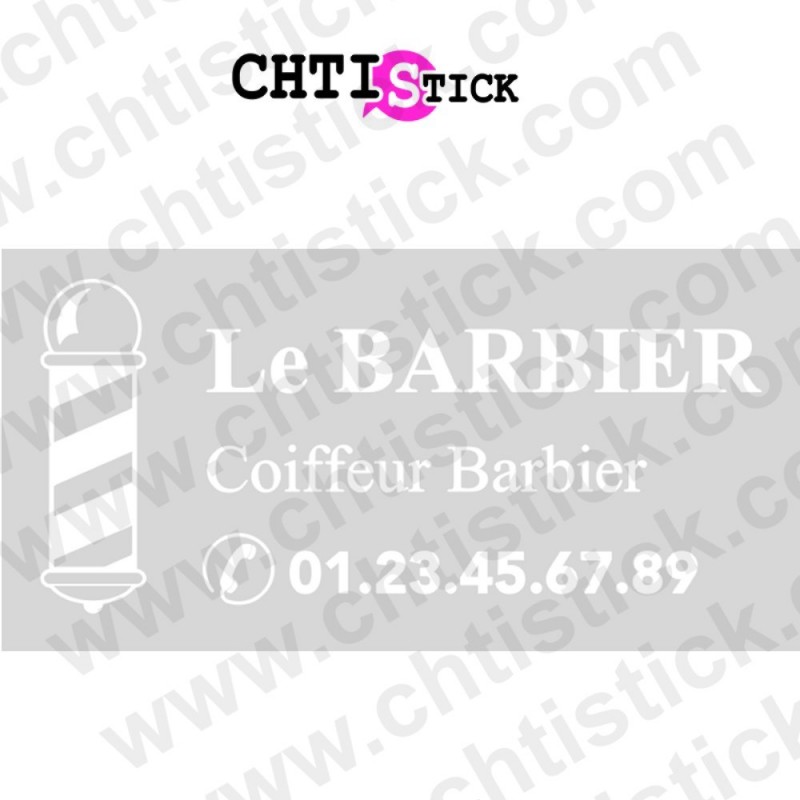 Marquage adhésif pour véhicule Coiffeur barbier, à poser sur vitre arrière ou pare-brise arrière.