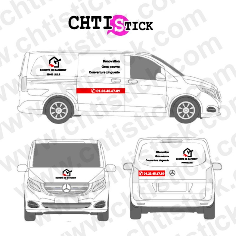 Adaptable pour véhicule de même gabarit : Il suffit juste de nous communiquer vos dimensions max et nous adapterons les autocollants au gabarit de votre véhicule, pour ce flocage utiliraire.