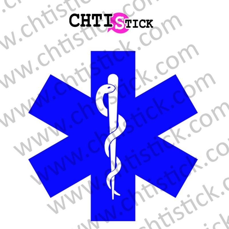 STICKER CROIX DE VIE AVEC CADUCEE, véhicule de secours, sticker AMBULANCE, sticker vitrine cabinet médical, ATSU, flocage ambulance