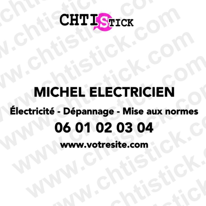 Marquage véhicule pour électricien, idéal pour vitres arrière, vitres latérales et carrosserie. Autocollant professionnel pour signaler vos services d’électricité générale, dépannage et installation.