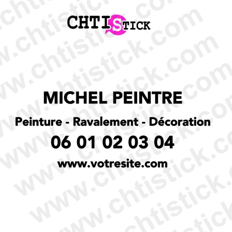 Marquage adhésif pour véhicule de peintre en bâtiment, idéal pour vitres arrière, latérales et carrosserie. Autocollant professionnel pour signaler vos services de peinture, décoration et ravalement.