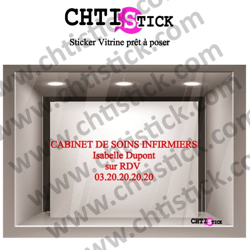 sticker vitrine cabinet soins infirmiers, cabinet médical, pour infirmier et infirmière, modèle 1