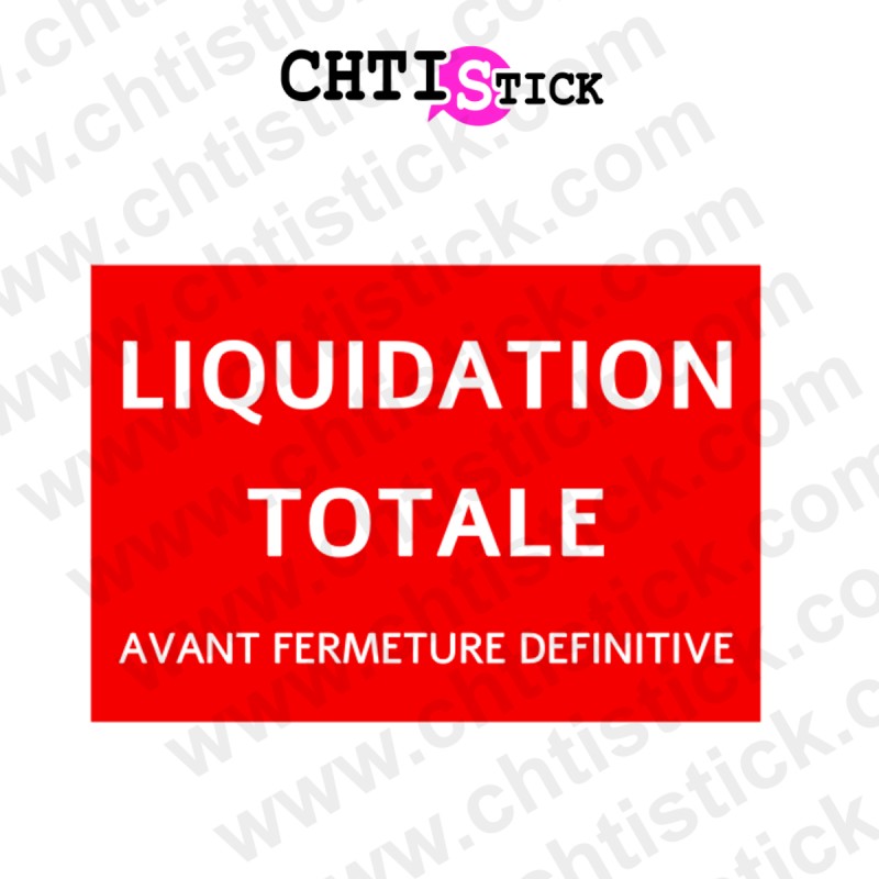 Sticker "liquidation totale" avant fermeture pour l'animation de votre vitrine. Affichez votre liquidation avant fermeture avec cet autocollant haute qualité à coller sur la vitrine de votre boutique