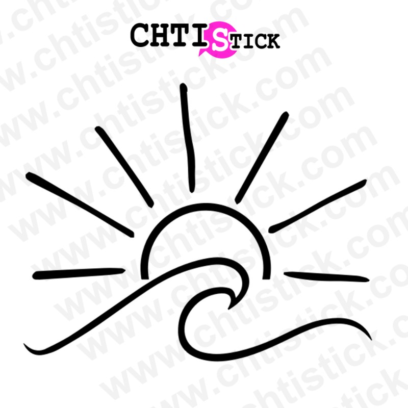 Personnalisez votre camping-car, van aménagé ou combi VW avec cet autocollant camping car inspiré de la van life. Un design minimaliste représentant une vague et un soleil pour afficher votre passion pour le camping car