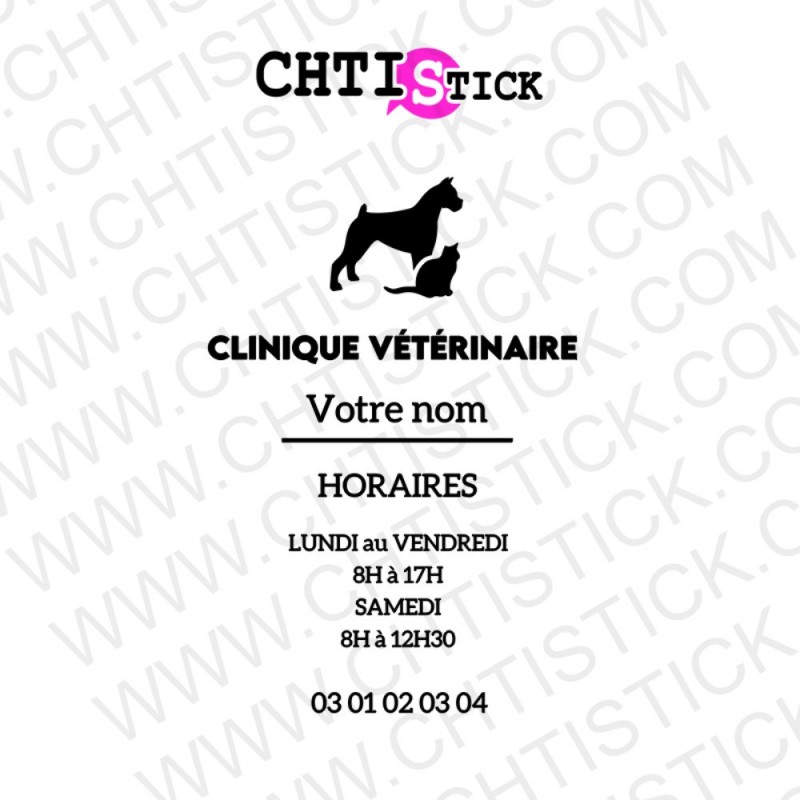 STICKERS VITRINE HORAIRES CLINIQUE VETERINAIRE PERSONNALISE