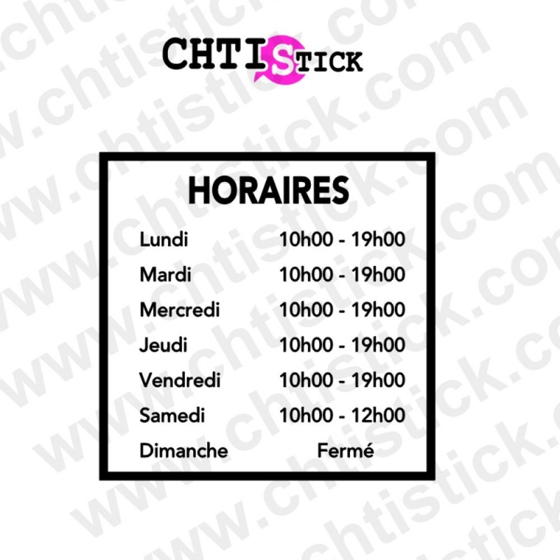 Personnalisez votre magasin avec votre sticker horaires, en y indiquant vos jours et Horaires