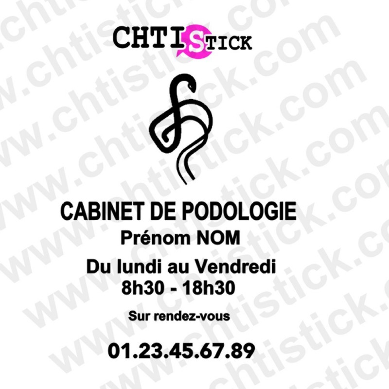 Affichez vos horaires de consultation de manière claire et élégante avec ces stickers horaires pour podolgue . Idéal pour les cabinets de podologie, ces autocollants se posent facilement sur vitres, portes ou vitrines
