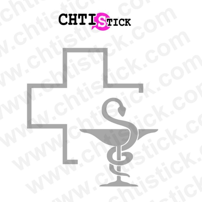 Stickers caducée croix pour Pharmacie en vinyle aspect dépoli