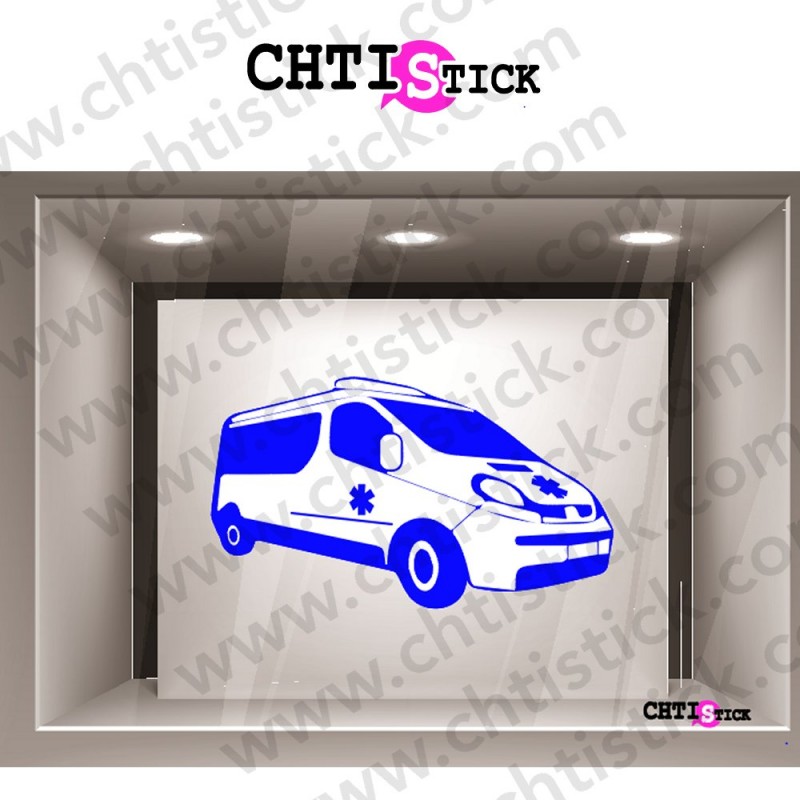 STICKER VITRINE AMBULANCIER - STICKER AMBULANCE - pour la décoration de votre vitrine, vitre - décoration adhésive, autocollant