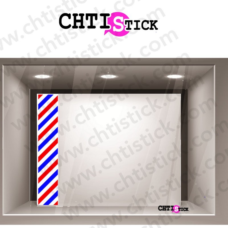 Marquage adhésif pour vitrine barber shop, autocollant imprimé bleu blanc rouge, texture des barbershop