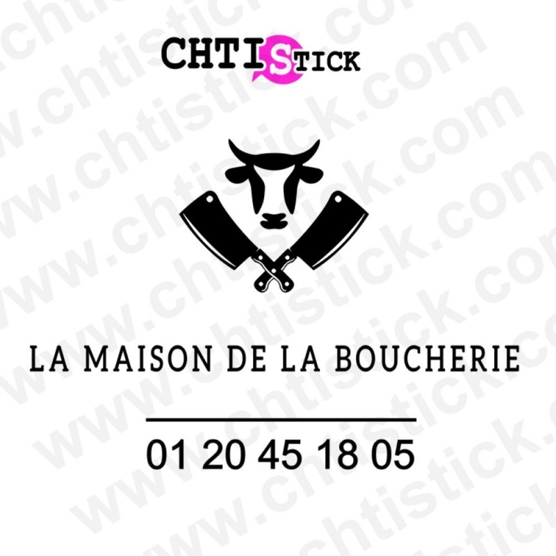 Autocollant logo Boucherie , Stickers vitrine Boucherie personnalisé avec le nom de votre Boucherie et votre numéro de téléphone